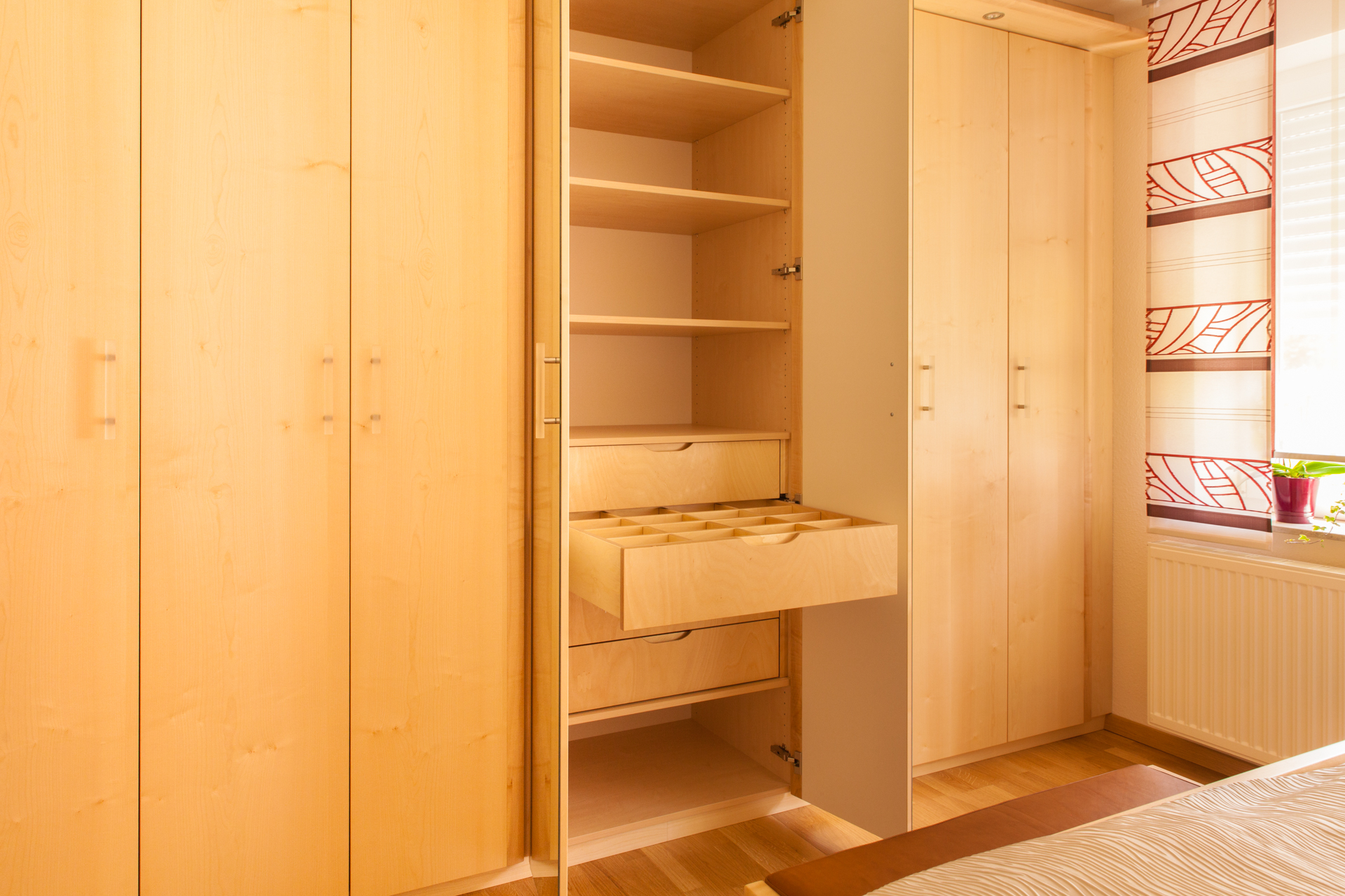 Ein knappes Drittel seines Lebens verbringt der Mensch im Schlaf. Die Zeit zum Einschlafen und Aufstehen mit eingerechnet, verbringen Sie also wahrscheinlich mehr Zeit im Schlafzimmer als in jedem anderen Raum Ihrer Wohnung. Doch wenn Sie bei der Überschrift „funktionale Details im Schlafzimmer“ an höhenverstellbare Kopfteile oder eine 7-Zonen-Komfortmatratze dachten, laden wir Sie ein die cleveren Details kennenzulernen, die die inHolz Tischlerei beim modernen Innenausbau zum Einsatz bringt.